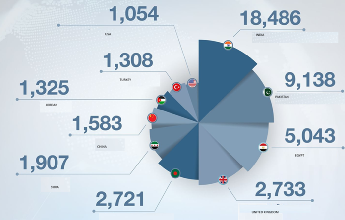 Syria placed sixth with 1,907 new members, China seventh with 1,583 (+7% YoY), Jordan eighth with 1,325, TĂĽrkiye ninth with 1,308, and the United States tenth with 1,054.